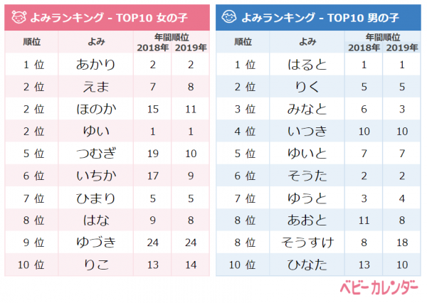 あの一文字レトロネームが急上昇 19年赤ちゃんの名前ランキング ベビーカレンダー Line News